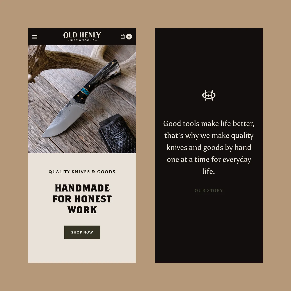 Identity and e-commerce website work for a family business founded in 2020 for small batch, handmade knives and other goods.